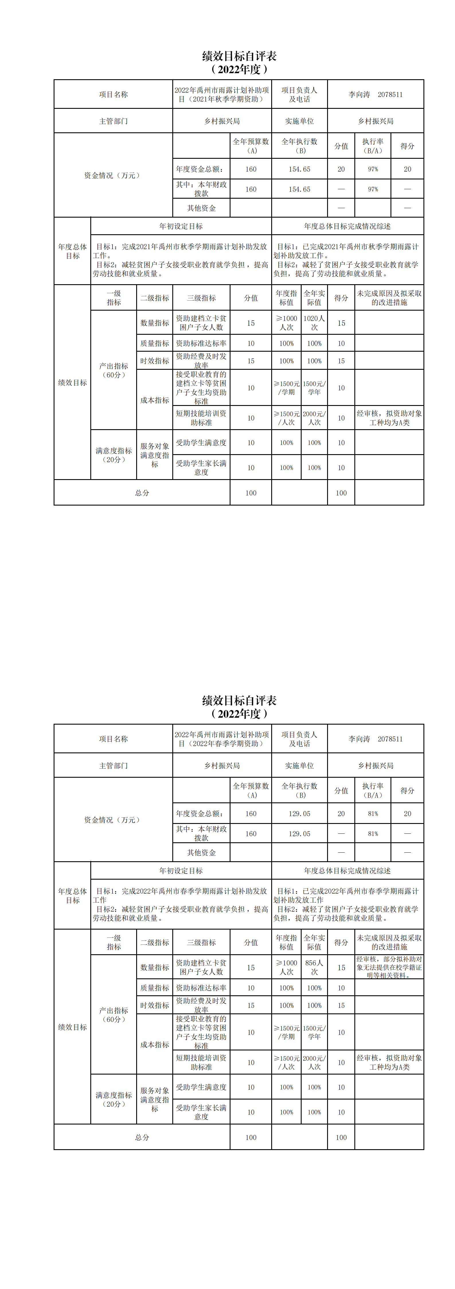 禹州市乡村振兴局2022年禹州市雨露计划补助项目自评结果公示