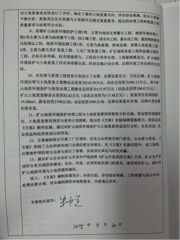 附:1、矿山地质环境保护与土地复垦方案评审意见