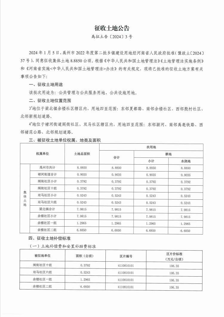 禹州市人民政府征收土地预公告