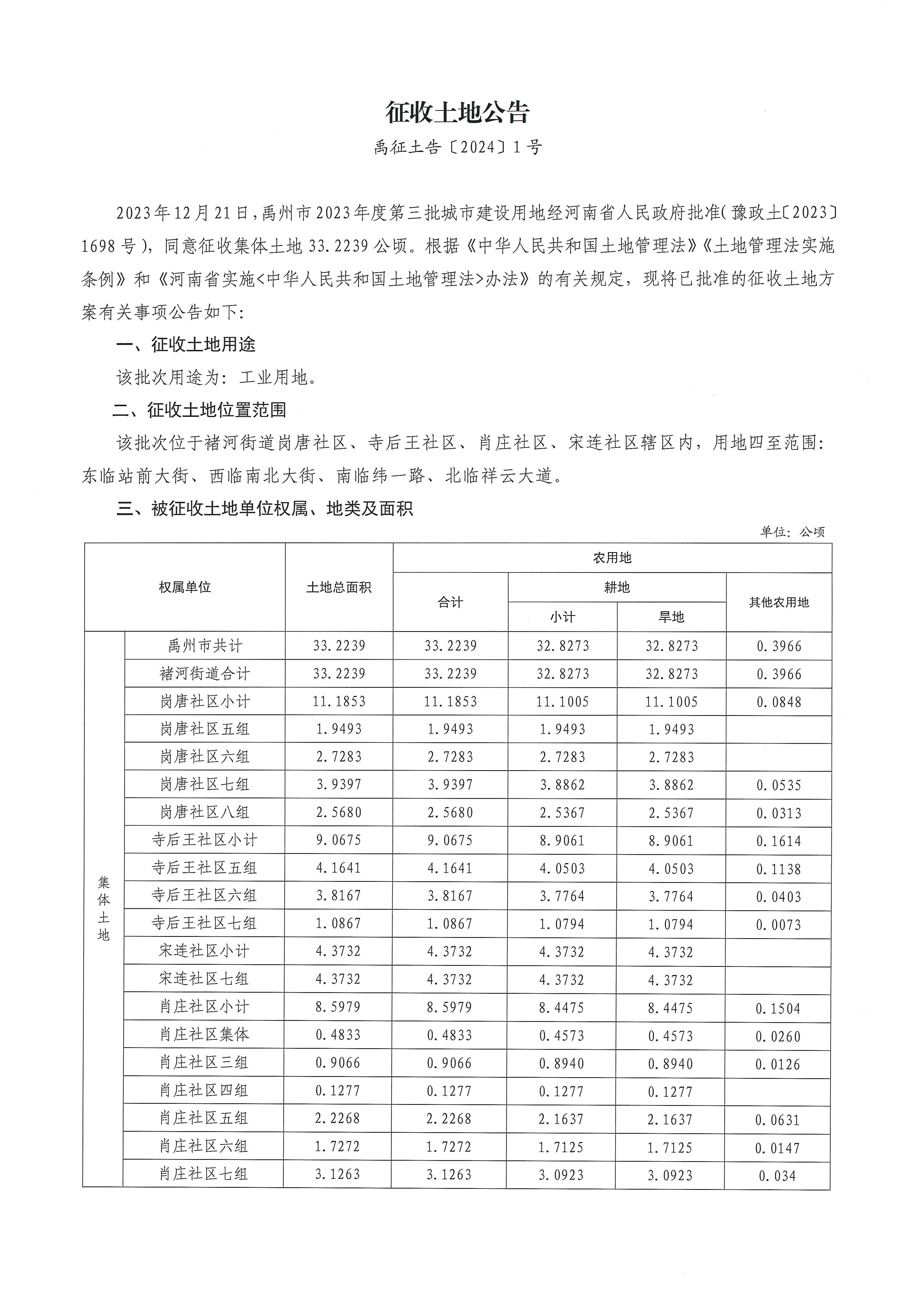 禹州市2023年度第三批城市征收土地公告