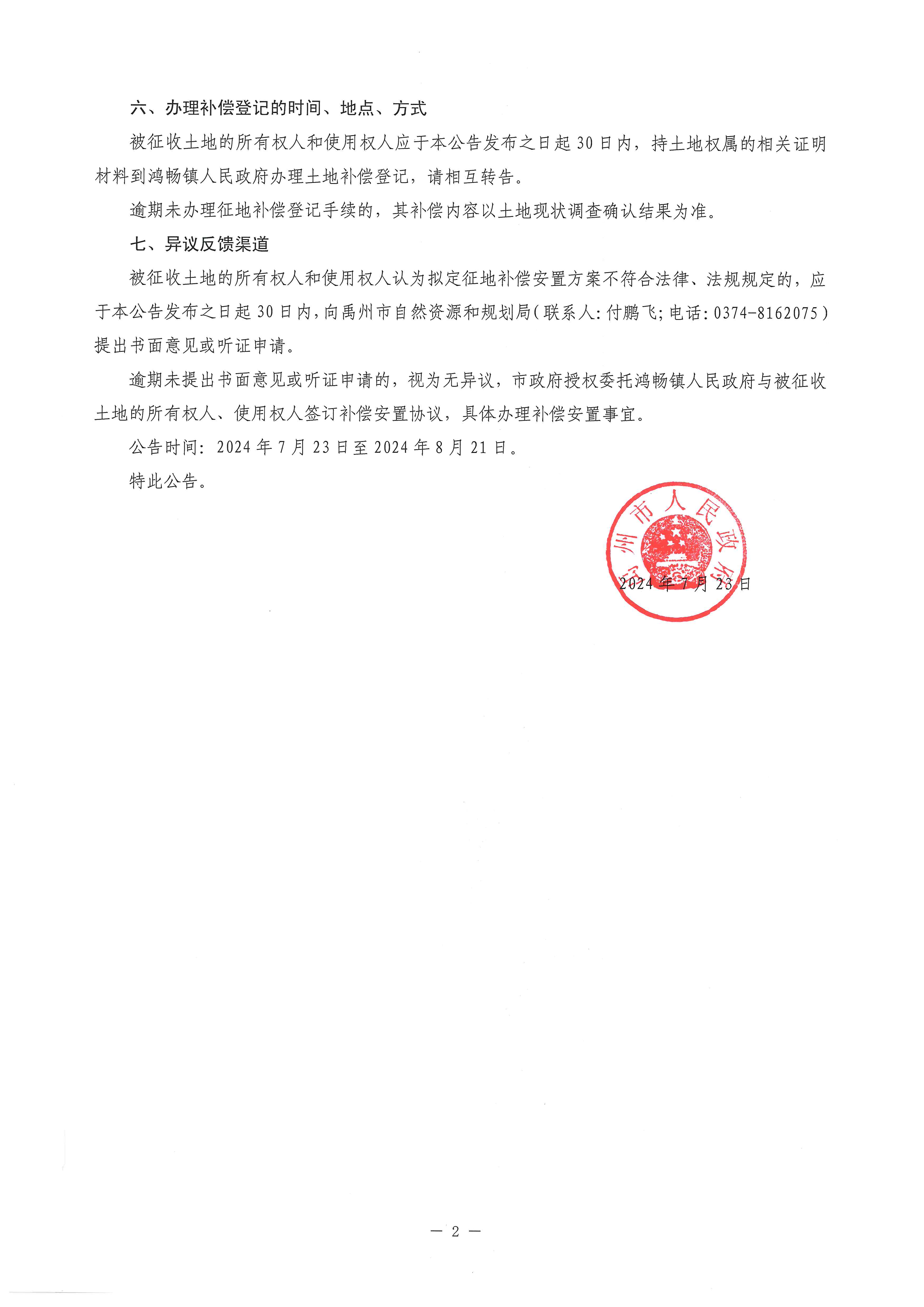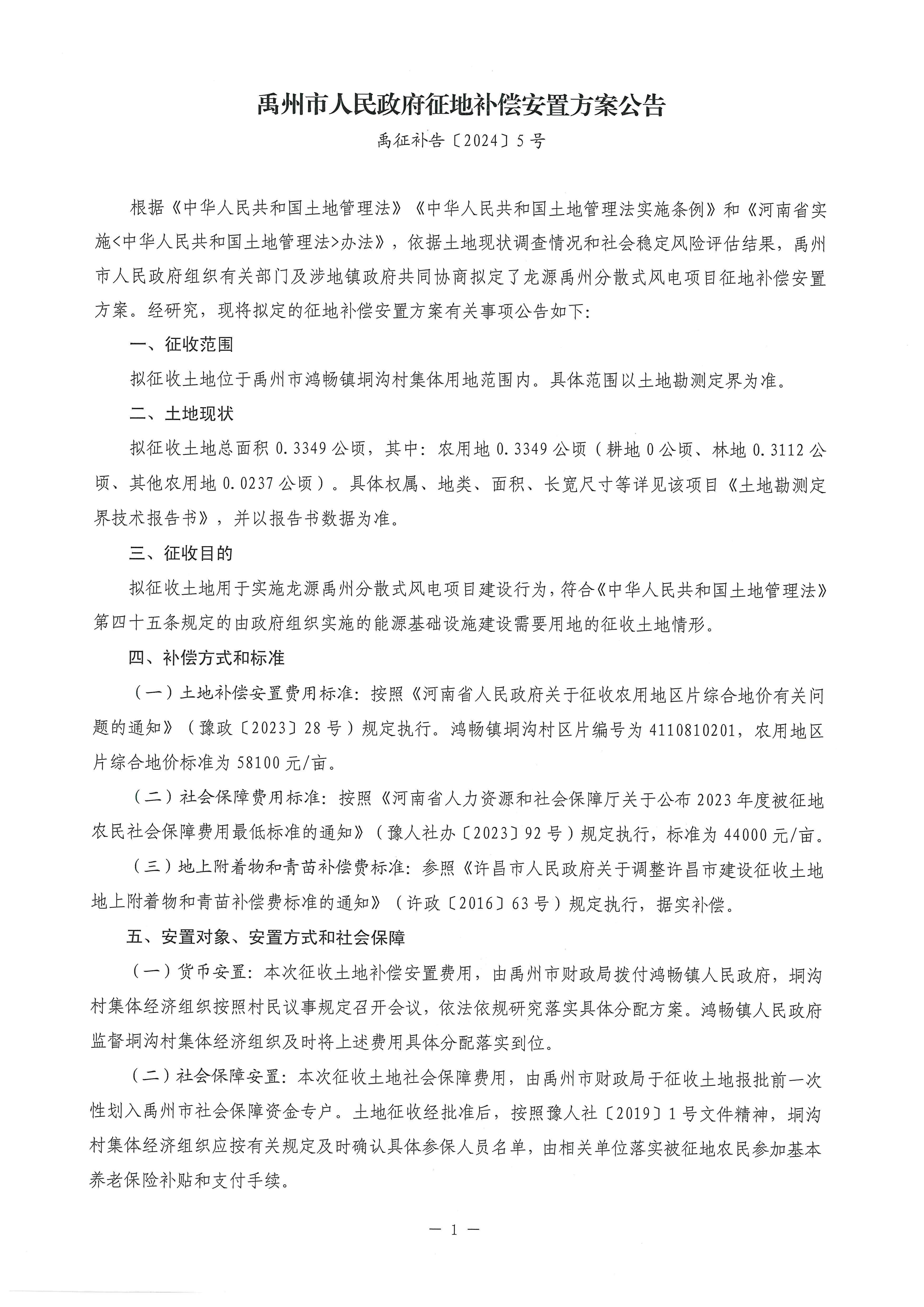 禹州市人民政府征地补偿安置方案公告