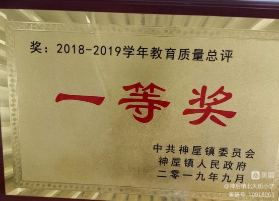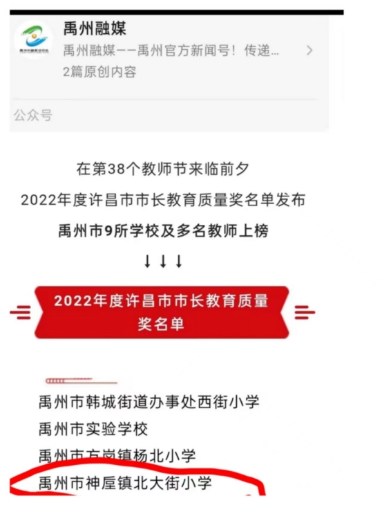 2022年8月。神垕镇北大街小学首次获得“许昌市市长教育质量奖。