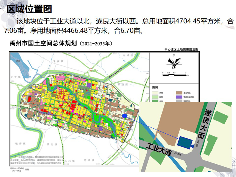 该地块位于工业大道以北,遂良大街以西。总用地面积4704.45平方米,合7.06亩。净用地面积4466.48平方米,合6.70亩。于2025年09月26日经中共禹州市委国土空间规划委员会2025年第六次会议审议通过。