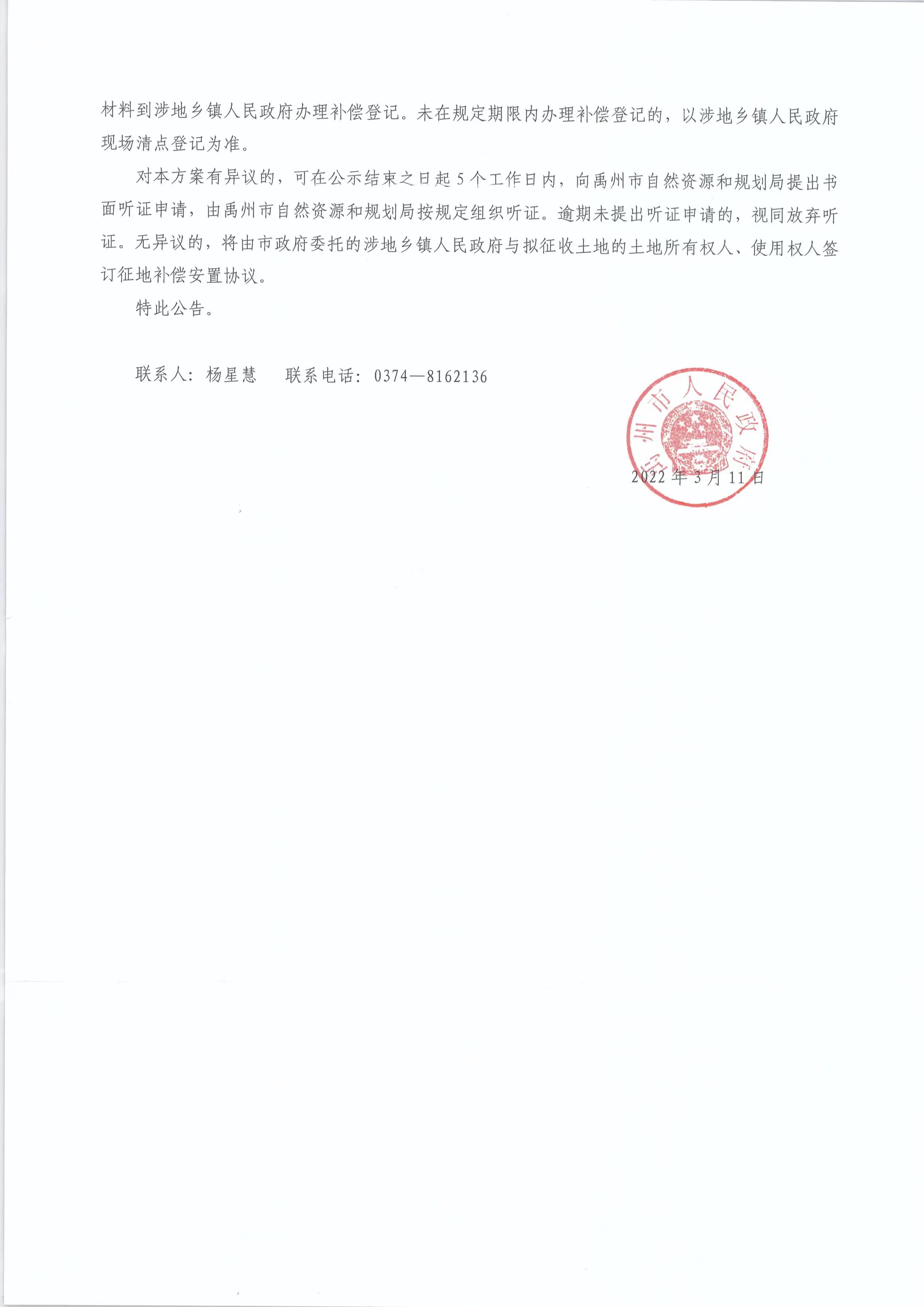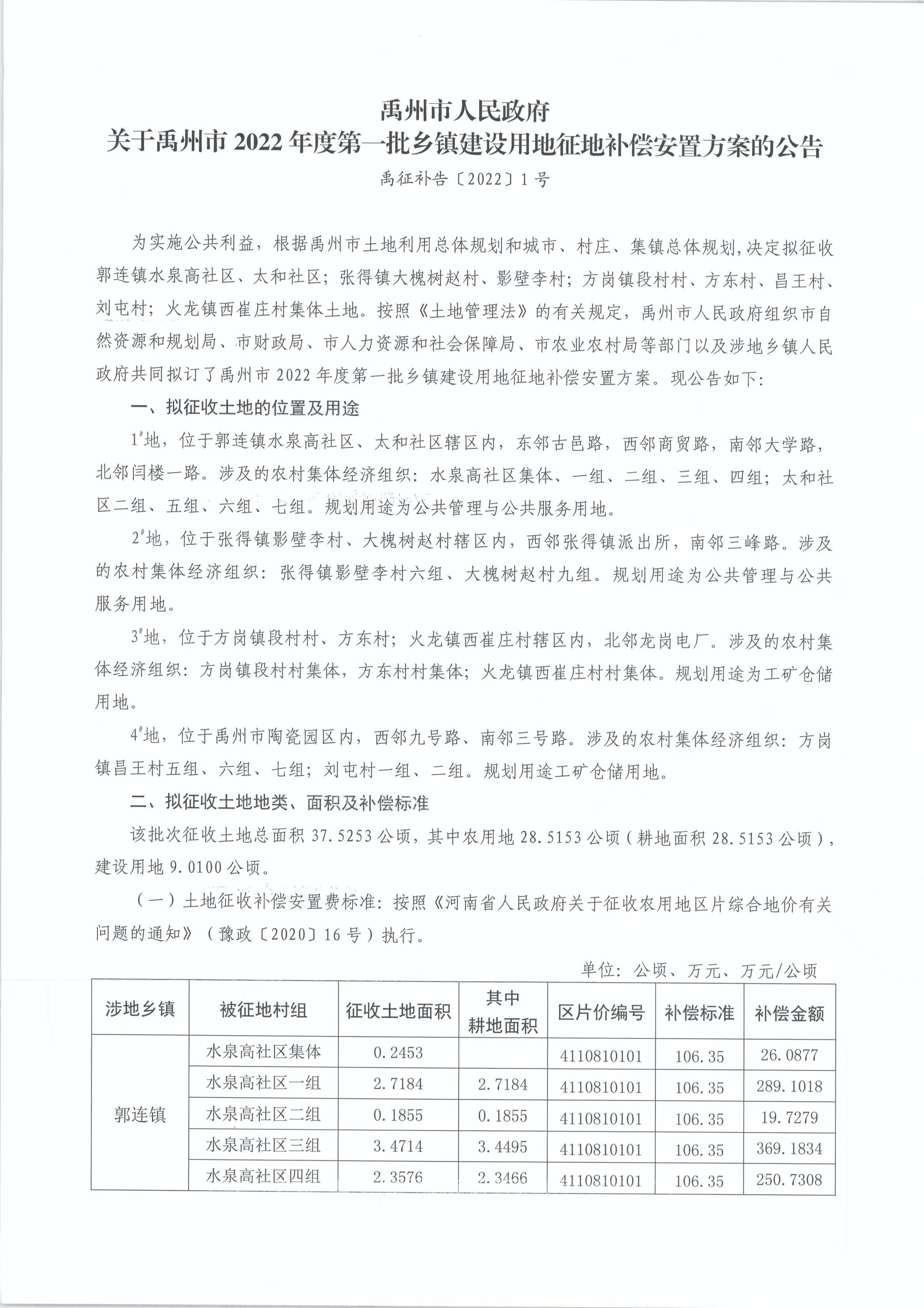 乡镇建设用地征地补偿安置方案的公告