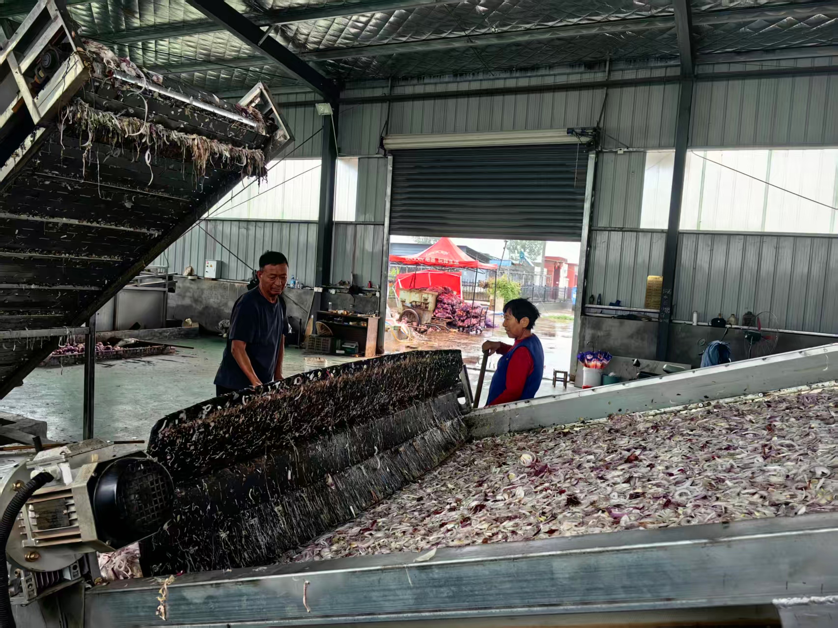 转机出现在今年4月。来自中国 “大蒜之乡”—— 山东省金乡县的一位果蔬贸易商,原本计划采购烘干设备自建烘干厂,却被设备销售厂家推荐到小韩村 “考察设备性能”。小韩村相关负责人李二帅敏锐地嗅到了商机,他没把这次考察当成简单的设备展示,而是视作融入外部大市场、拓展业务的绝佳招商引资机会。他当即上前拦住对方:“老哥,别买设备了!把原料拉到俺村来,我先给你试加工一批。禹州地理位置好、交通方便,人工成本还低,肯定比你自己建厂划算!” 这位刘姓老板当场决定,先在小韩村试烘60吨洋葱。检测结果显示,这批洋葱片色泽鲜亮、含水率完全达标,且单吨加工的综合费用,比他在山东自建厂低了一大截。刘老板当即拍板:“中!不过我得四季换不同品种加工,你们现在没有清洗、切片、甩水这些前置处理生产线,咋接得住活儿?”
