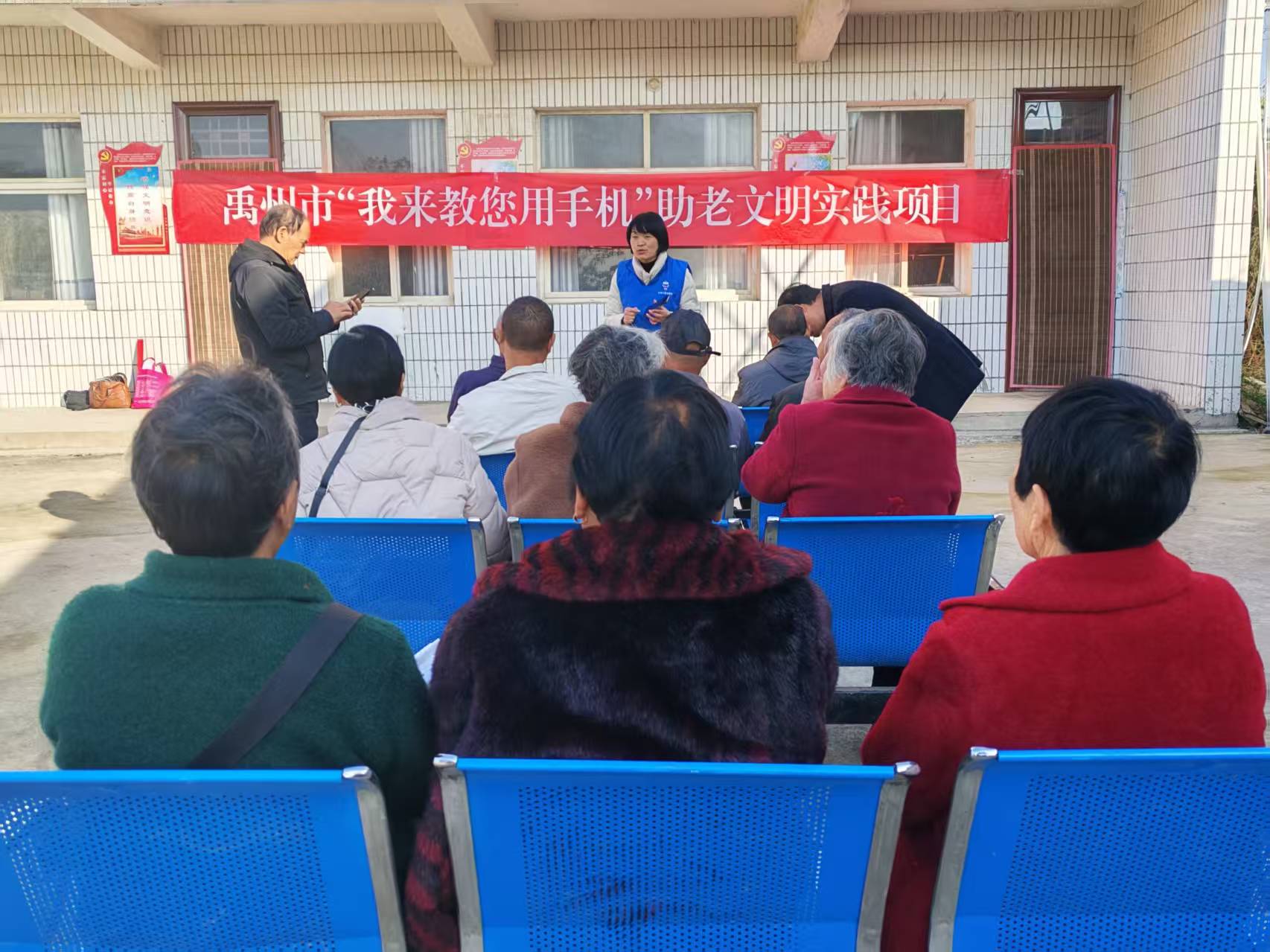 每讲完一步,先让老人自己操作一下;不会,就再教一遍。很多老人一学就会,现场“毕业”。