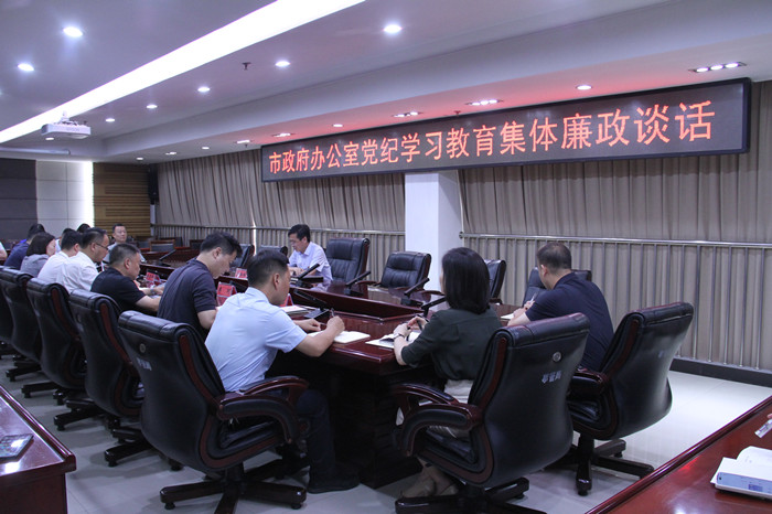 为推动党纪学习教育扎实开展,强化廉政风险防控,持之以恒推进全面从严治党,6月25日下午,市政府办公室组织召开集体廉政谈话会议。市政府机关党组书记、办公室主任李伟峰主持会议并开展集体廉政谈话,机关中层以上党员干部参加会议。